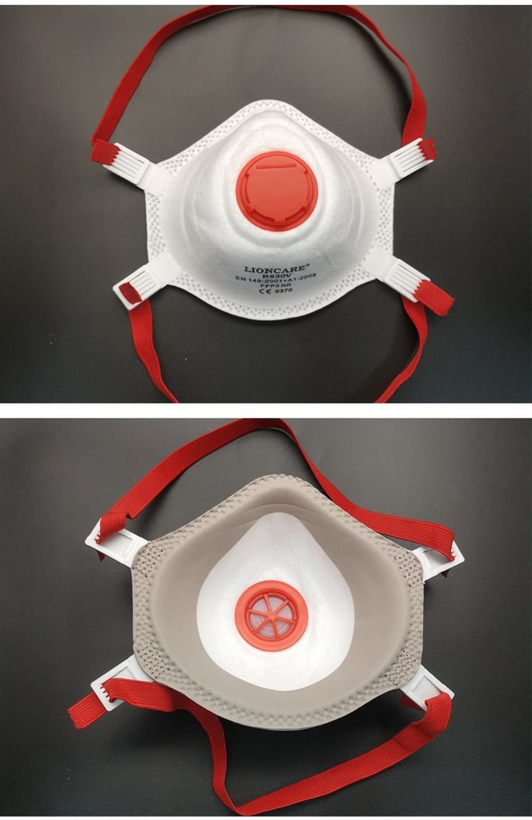 La maschera facciale respiratoria FFP3 a forma di coppa LIONCARE (4-strato) con valvole è ideale per filtrare sostanze pericolose, come aerosol solidi, liquidi e batteri elencati come tossici, fornendo una protezione di filtrazione di alta qualità. La forma a cappuccio con clip per naso attaccata assicura che la maschera facciale ffp3 NR si adatti comodamente al tuo viso. La valvola collegata garantisce una respirazione facile durante l'intera giornata lavorativa. La fodera in EVA offre un migliore comfort.