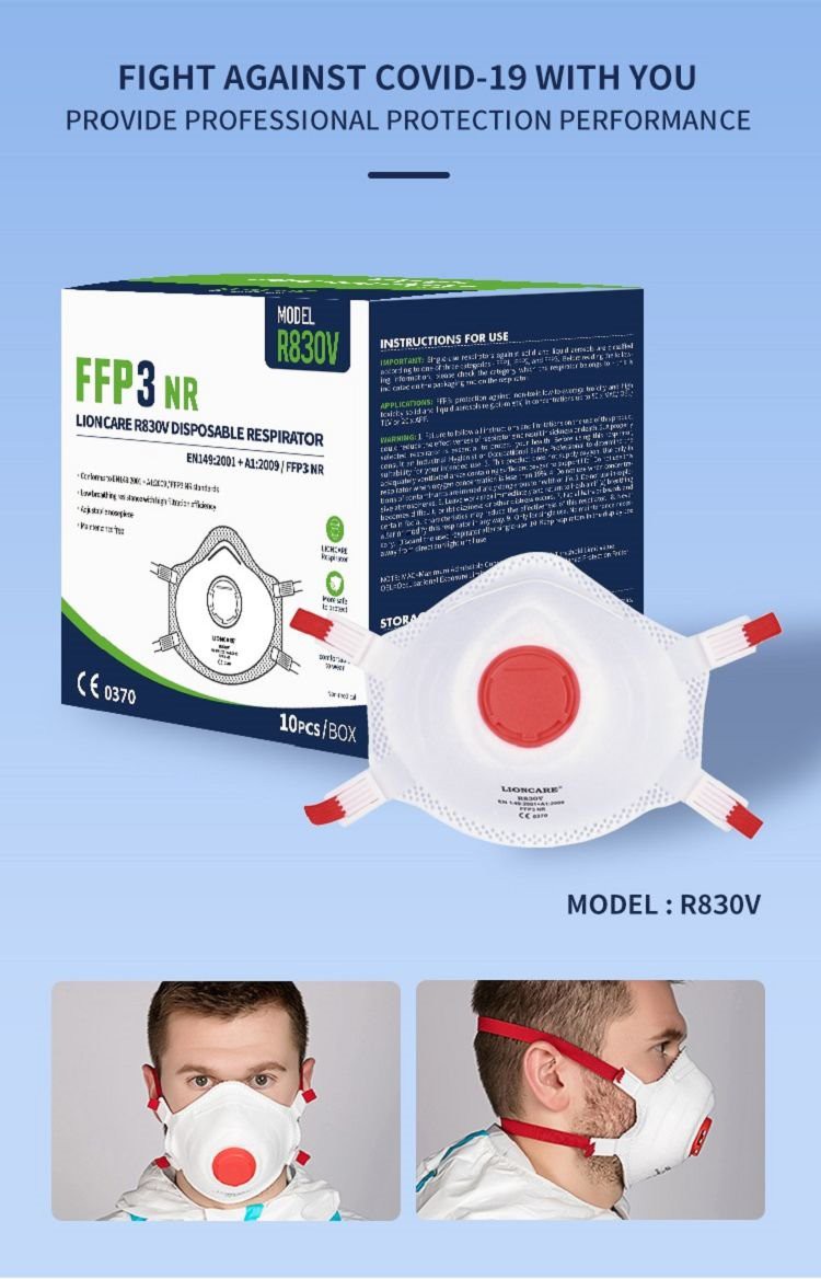 R: Il respiratore R830V FFP3 è dotato di una valvola per una facile espirazione, clip per naso regolabile per una vestibilità sicura e cinghie elastiche per indossarlo comodamente. Dispone inoltre di un morbido rivestimento interno per un maggiore comfort durante l'uso prolungato.